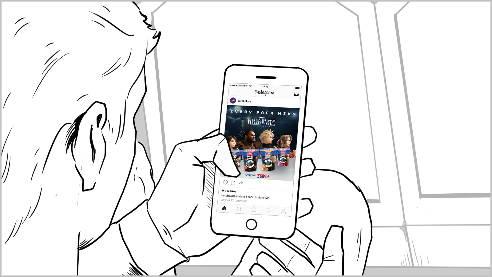 Once we had Batchelors and Square Enix on board, our next move was to pitch the promotion to our preferred retail partner, Tescos. To help ensure the meeting was a success, I storyboarded a 'Shopper Journey' to help executives visualise how things would play out.